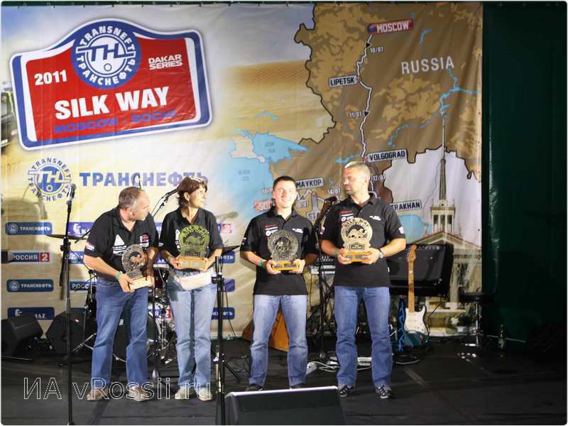 Немного о списке победителей 2011 года, - здесь тоже немало интересного. Трехкратный золотой призер "Дакара" Стефан Петрансель на первом участке из-за сбоя электрики потерял несколько часов и уступил поляку Кшиштофу Холовщицу. На третье место попал россиянин Александр Желудов. Лидер в категории грузовиков — наша команда "КамАЗ-Мастер" — потеряла первое место из-за того, что пилот Фирдаус Кабиров уже после гонки превысил скорость на шоссе возле Ставрополя. В результате нашим соотечественникам организаторы добавили час штрафного времени, что отбросило их на второе место.